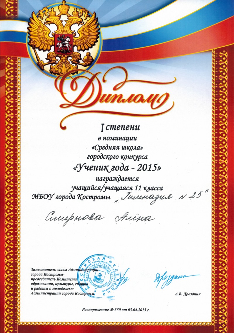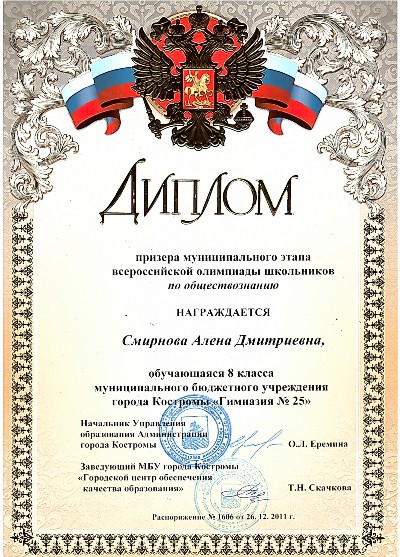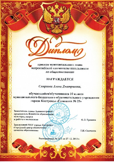 Городская олимпиада по обществознанию в 10 классе (2013-2014 уч. г.) – призёр