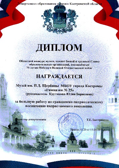 Участие в областном конкурсе музеев, посвящённый 70-летию Победы в Великой Отечественной войне