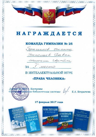 3 место в Интеллектуальной игре «Права человека» в 2014 году